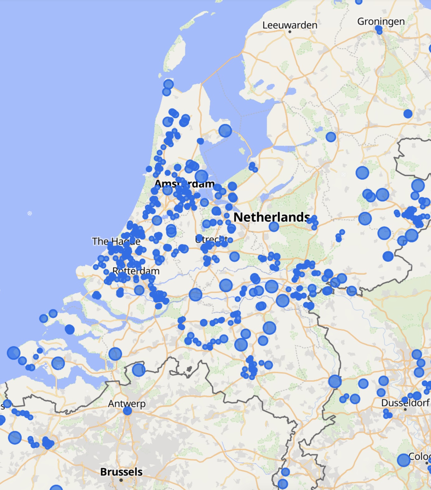 De nodes in de regio Valleirug kunnen op dit moment (29-11-2025) communiceren met nodes in Westen van Nederland.